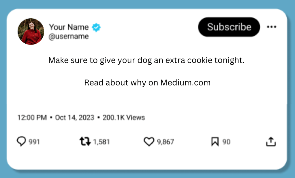 I opted with a fun call-to-action with no context that states something that most people already do. Hopefully the dog owners of X will be curious as to why I would feel the need to advocate for other dogs.